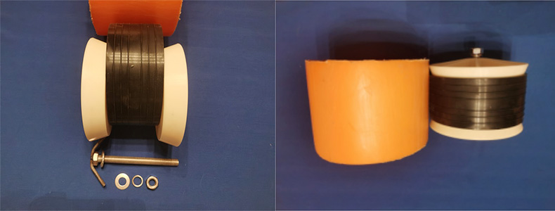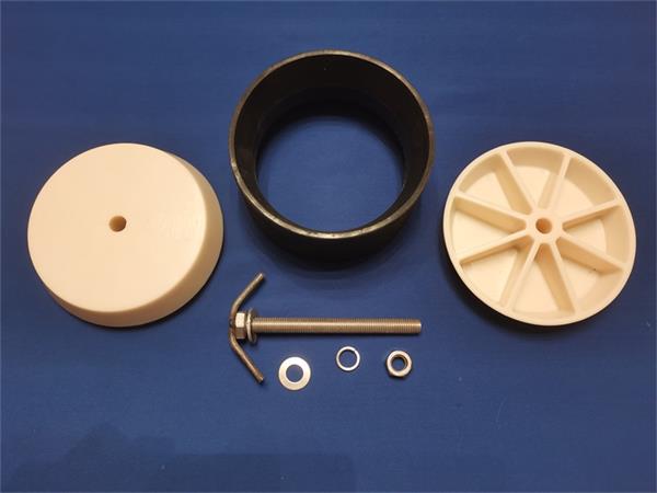 由兩個增壓盤、一個密封膠圈、一個密封墊和一套不銹鋼螺栓共五部分構(gòu)成如下圖: