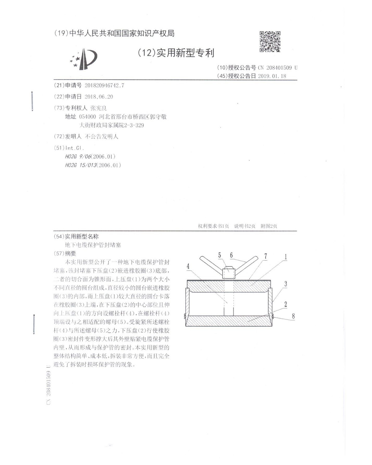電纜管封堵器又名阻水法蘭、止水法蘭和封堵法蘭,近年來(lái)封堵器在電網(wǎng)工程中發(fā)揮的作用越來(lái)越受到重視。我公司在總結(jié)了國(guó)內(nèi)外電纜管口封堵器優(yōu)缺點(diǎn)基礎(chǔ)上,成功研發(fā)生產(chǎn)了新型電纜管封堵器,并獲得了專(zhuān)利證書(shū)。專(zhuān)利號(hào):ZL 2018 2 0946742.7 。該專(zhuān)利產(chǎn)品投放市場(chǎng)使用5年多來(lái)封堵效果良好。目前我公司生產(chǎn)的封堵器有兩大類(lèi):空管封堵器KGD和有電纜管封堵器LGD,其中有電纜管封堵器部分產(chǎn)品是與優(yōu)質(zhì)廠家合作生產(chǎn)。具體說(shuō)明如下: