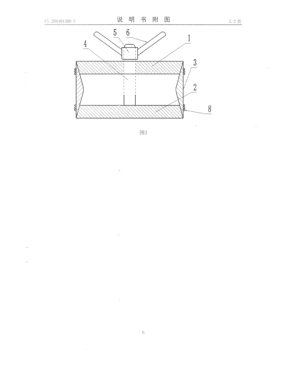由一個(gè)帶軸錐形盤(pán)、一個(gè)帶孔錐盤(pán)、一個(gè)羊角螺母和一個(gè)密封橡膠筒共四部分組成如下圖: