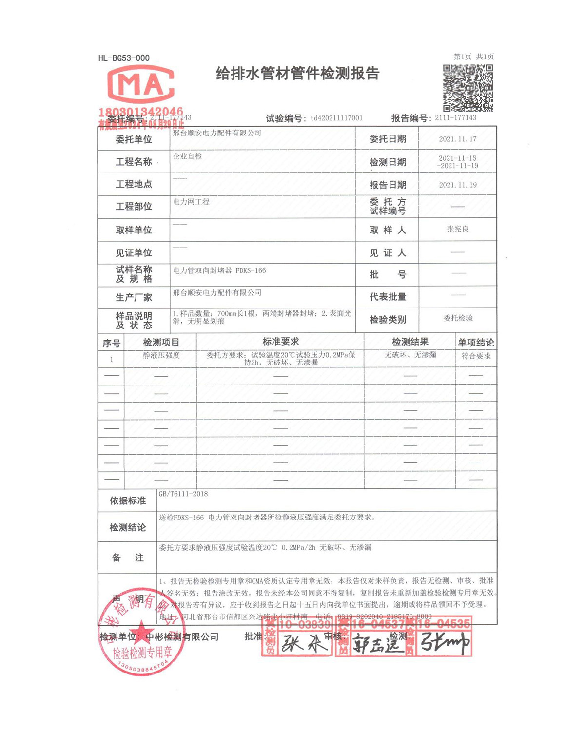 附件三、有纜管封堵器LGD水壓檢測(cè)報(bào)告及檢驗(yàn)裝置機(jī)構(gòu)照片: